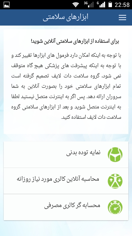 پس از آن اپلیکیشن سلامت سایت را در اختیار کاربران فعال خود قرار دادیم و با راهنمایی های آن بزرگواران توانستیم اپلیکیشن سلامت دات لایف را آماده و منتشر کنیم. در این نرم افزار سلامت محور شما می توانید از امکانات گسترده ای که در حال حاضر در سایت موجود است استفاده نمایید.